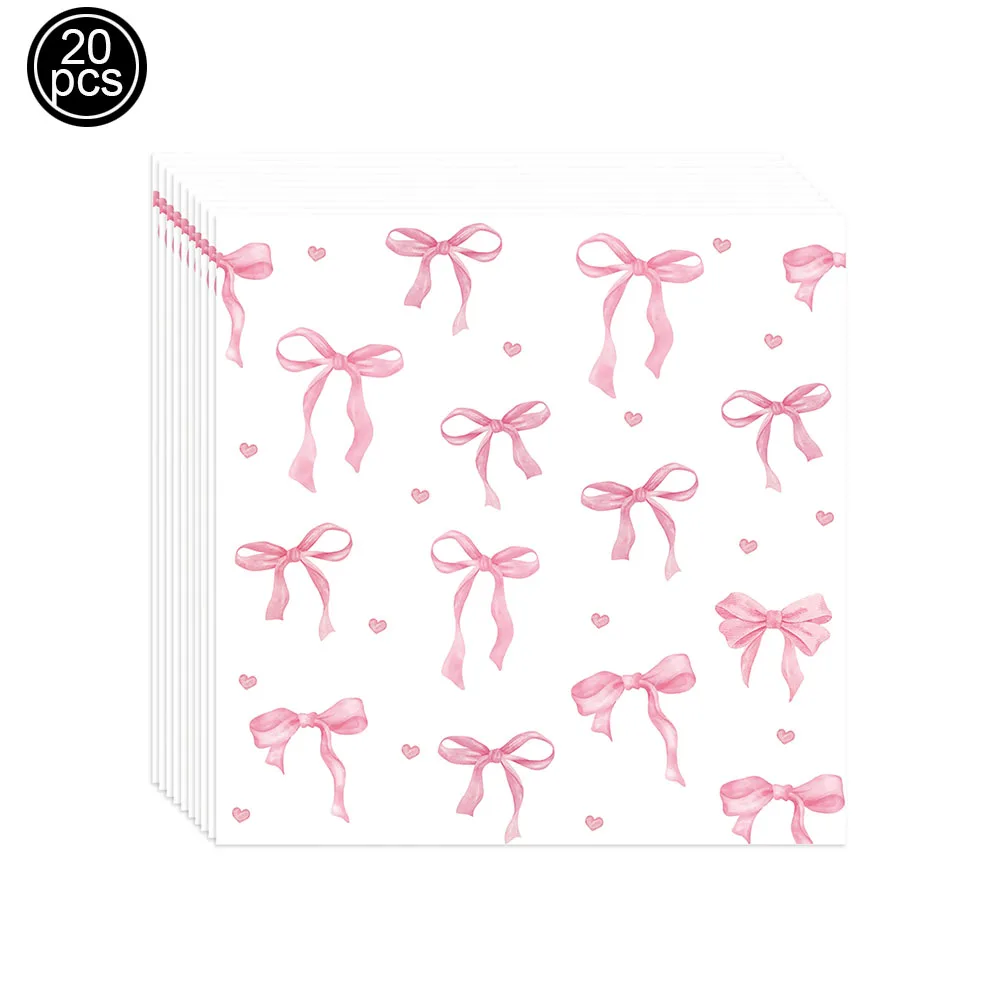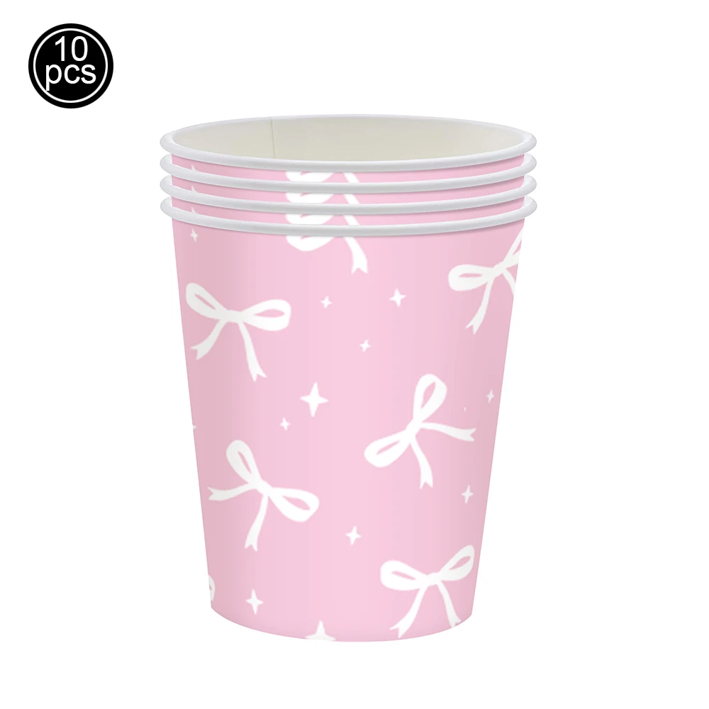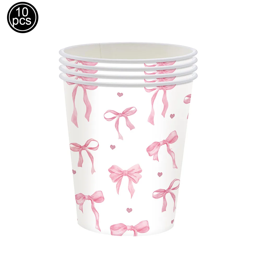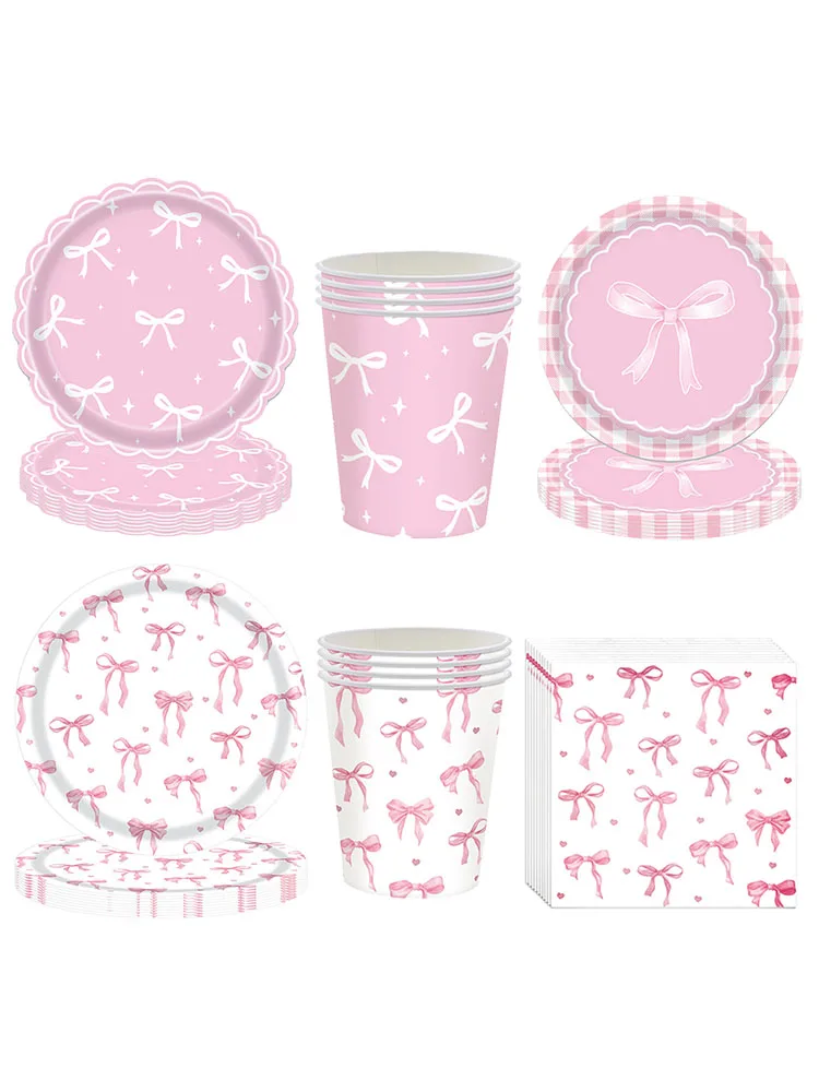 Pink Bow Disposable Tableware Bow Birthday Theme Party Paper Plates Napkins Girl Bachelorette Engagement Bow Decor Supplies