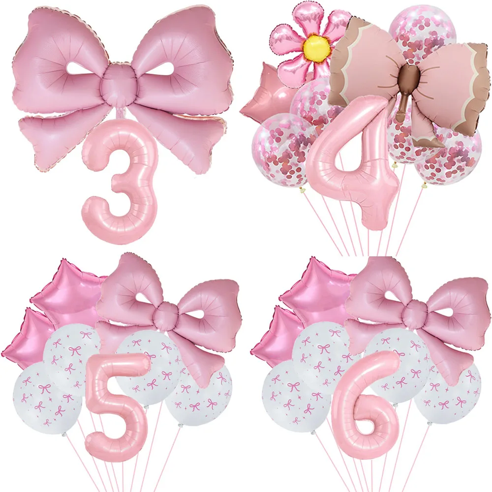 Pink Bow Balloons Kits Girls Birthday Pink Bownot Balloon With Pink 32" Number Balloon Coquette Birthday Wedding Party Decors